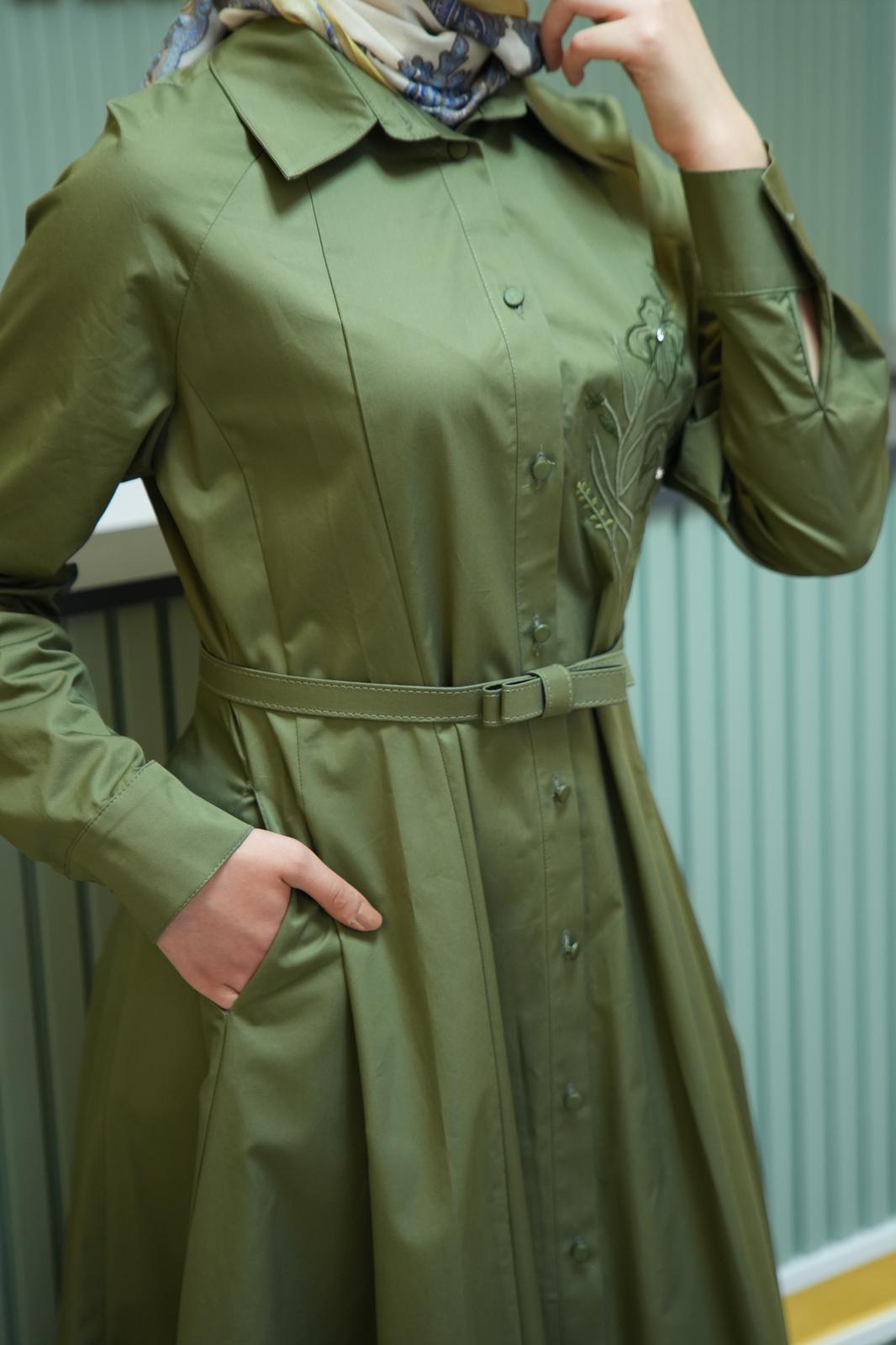 • İşleme Detaylı Gömlek Elbise